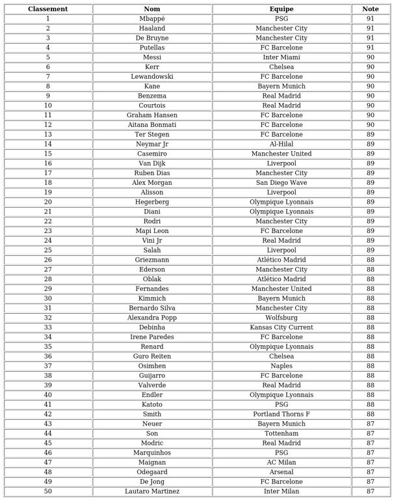Les fans attendent également avec impatience de découvrir si d'autres joueurs de renom se hisseront au sommet du classement. Récemment, le tableau des scores a été révélé, dévoilant le classement des 50 meilleurs talents du jeu. Ce palmarès met en lumière une diversité de joueurs, y compris plusieurs joueuses d'élite.