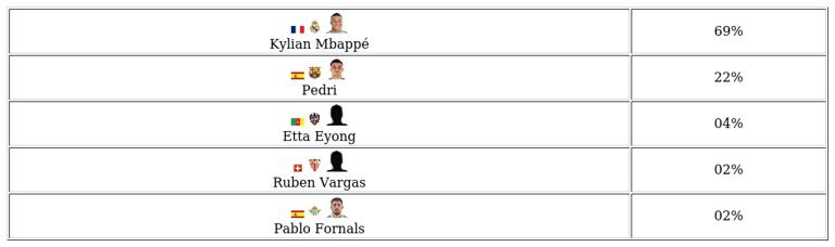 Fans have the opportunity to participate in selecting the top La Liga players each month.