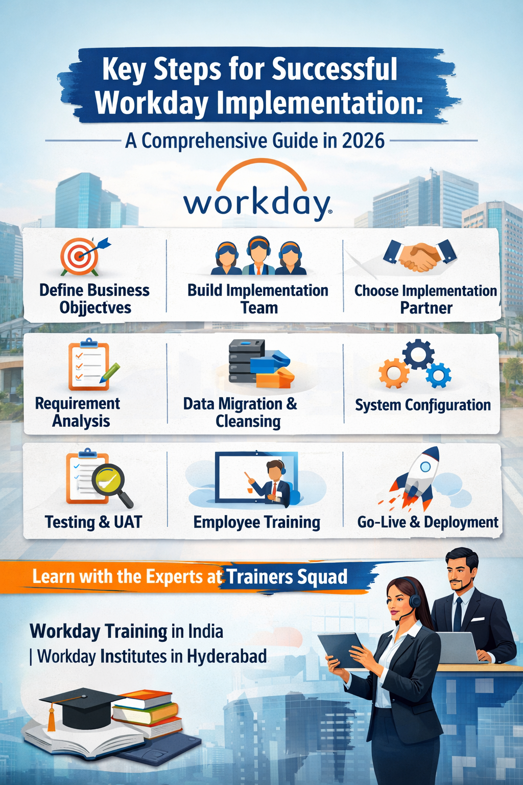 In this comprehensive guide, we will walk you through the key steps for a successful Workday implementation in 2026 while also highlighting the importance of workday training in india, top workday institutes in hyderabad, and how platforms like trainers squad can support your journey.