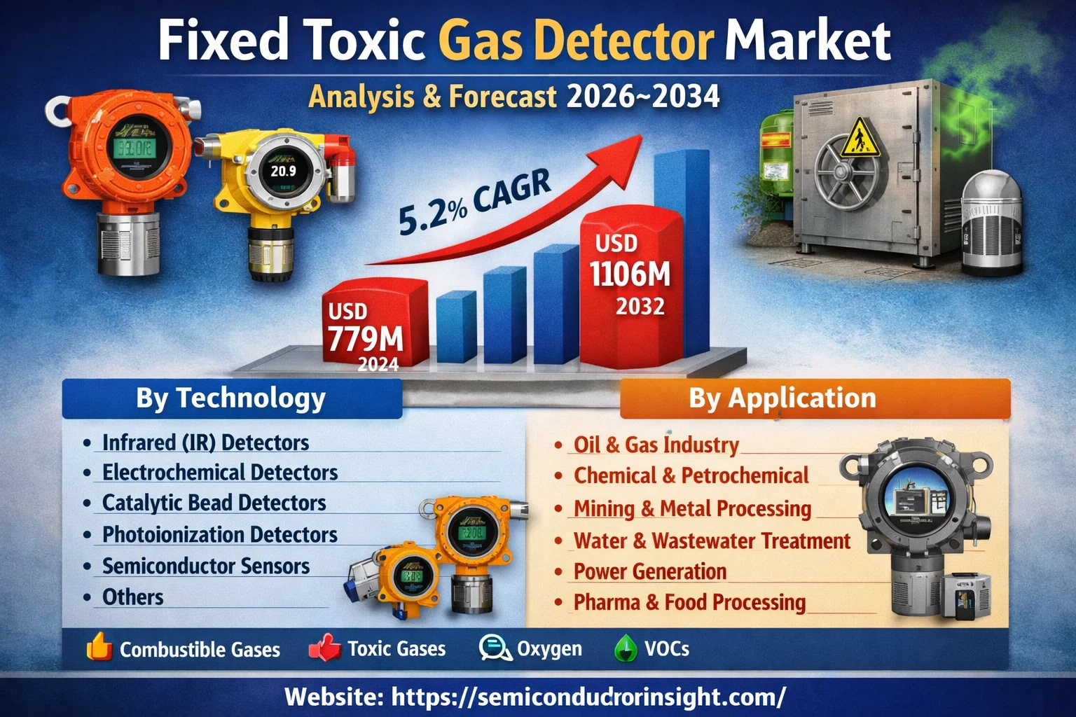 Global Fixed Toxic Gas Detector Market, valued at USD 779 million in 2024, is poised for steady growth, projected to reach USD 1106 million by 2032. This expansion, reflecting a compound annual growth rate (CAGR) of 5.2%, is detailed in a comprehensive new report published by Semiconductor Insight. The study underscores the indispensable role of these critical safety systems in protecting personnel, assets, and the environment across high-risk industries.