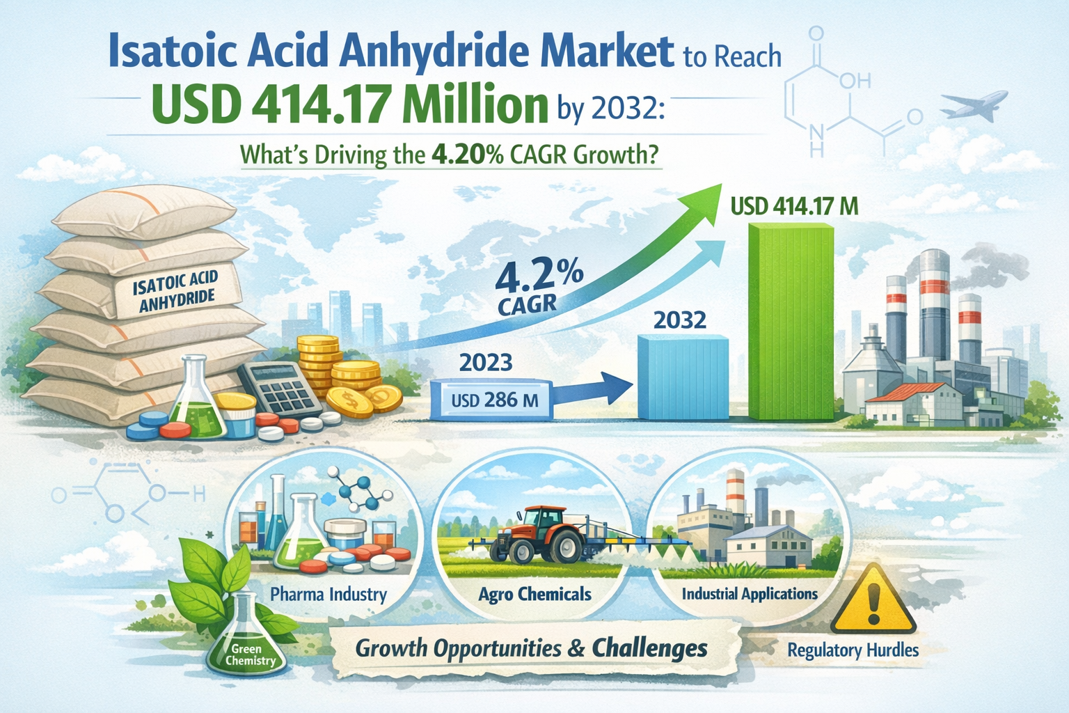 Global Isatoic Acid Anhydride Market is experiencing steady expansion, with its valuation reaching USD 286 million in 2023. According to the latest industry analysis, the market is projected to grow at a CAGR of 4.2%, reaching approximately USD 414.17 million by 2032. This growth trajectory reflects increasing applications in pharmaceutical synthesis and agrochemical production, particularly in regions with expanding industrial and agricultural sectors.