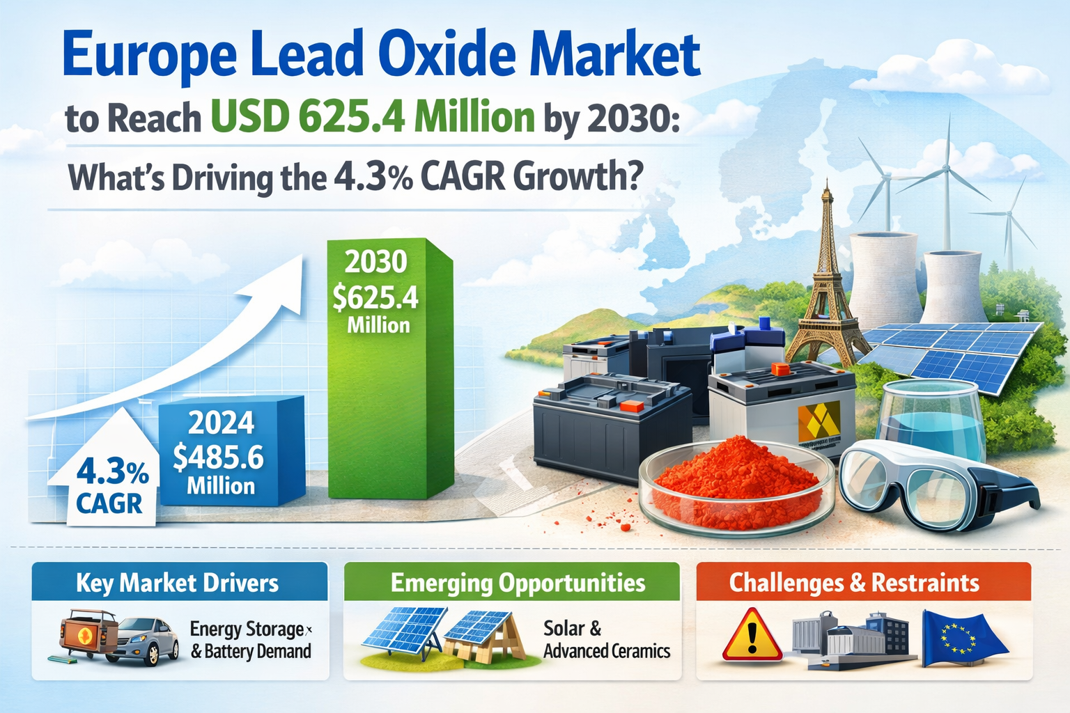 Europe lead oxide market continues its steady growth trajectory, reaching USD 485.6 million in 2024 and projected to achieve USD 625.4 million by 2030 at a compound annual growth rate (CAGR) of 4.3%, according to the latest market analysis. This growth remains primarily driven by sustained demand from the battery manufacturing sector, which accounts for 55% of total consumption, while niche applications in glass and ceramics continue to demonstrate stable utilization patterns.