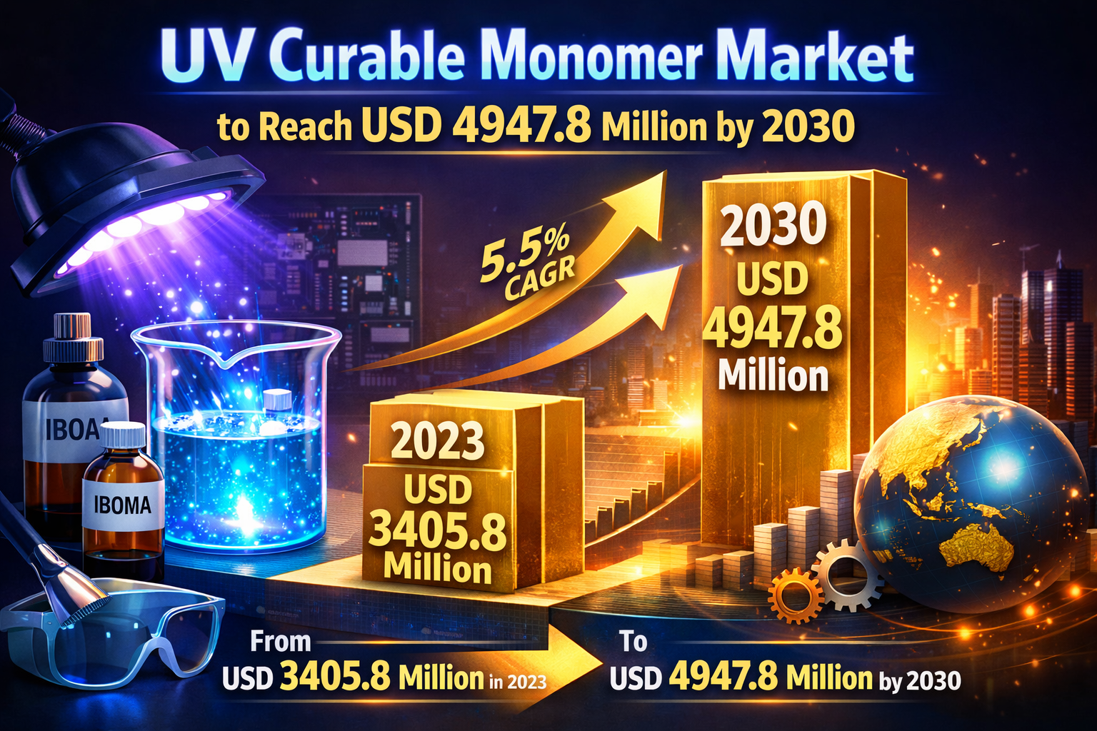 Global UV Curable Monomer market was valued at USD 3405.8 million in 2023 and is projected to reach USD 4947.8 million by 2030, at a CAGR of 5.5% during the forecast period.