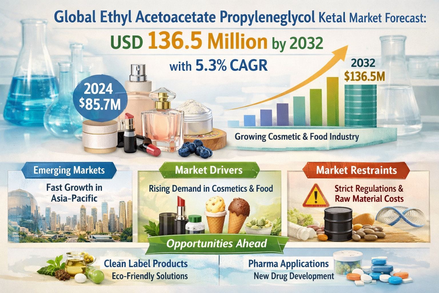 Global Ethyl Acetoacetate Propyleneglycol Ketal market was valued at USD 85.7 million in 2024 and is projected to grow from USD 91.2 million in 2025 to USD 136.5 million by 2032, exhibiting a CAGR of 5.3% during the forecast period.