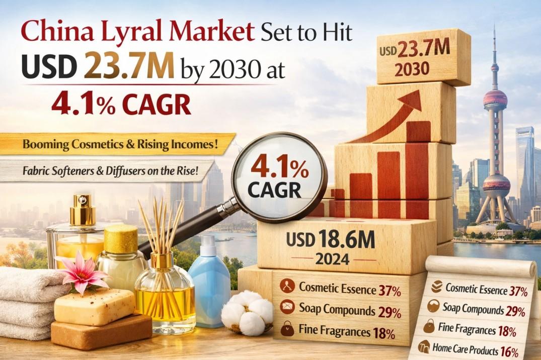 China Lyral market is valued at USD 18.6 million in 2024 and is projected to grow at a CAGR of 4.1%, reaching USD 23.7 million by 2030. This synthetic fragrance ingredient, known for its distinctive lily-of-the-valley scent profile, continues to gain traction across personal care and home fragrance applications despite tightening regulatory scrutiny in key markets.