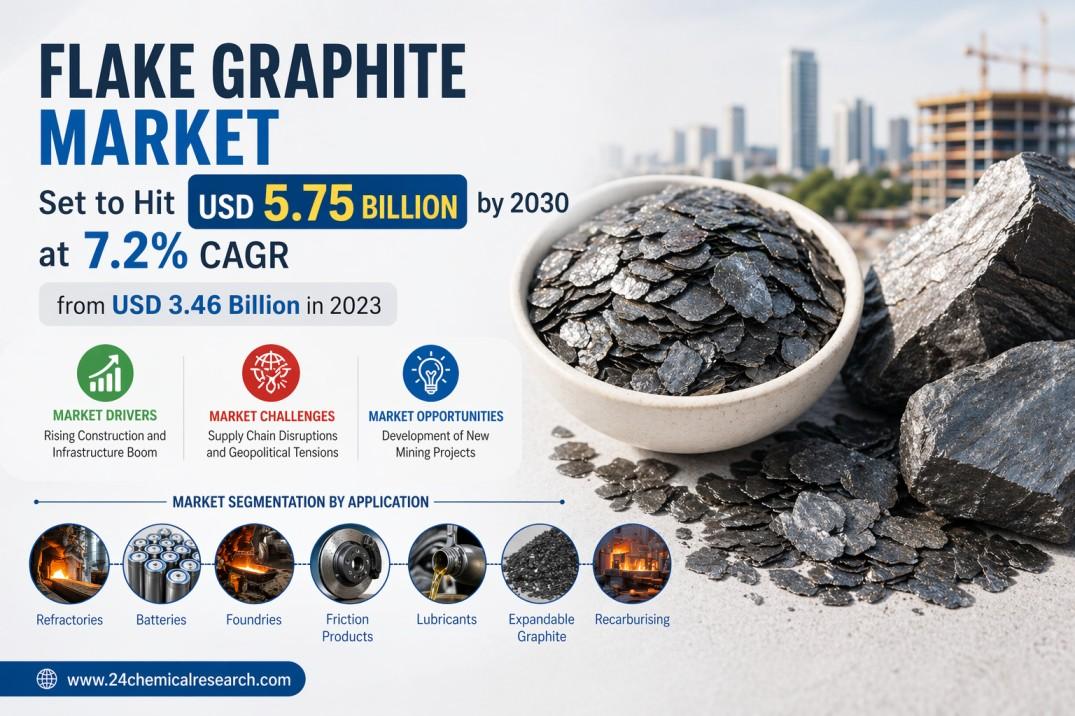 Global Flake Graphite Market continues to expand at a robust pace, with valuations reaching USD 3.46 billion in 2023 and projected to grow at a CAGR of 7.2%, exceeding USD 5.75 billion by 2030. This upward trajectory is fueled by surging demand across refractories, batteries, and emerging green energy applications, though supply chain realignments post-pandemic and geopolitical factors remain critical considerations.