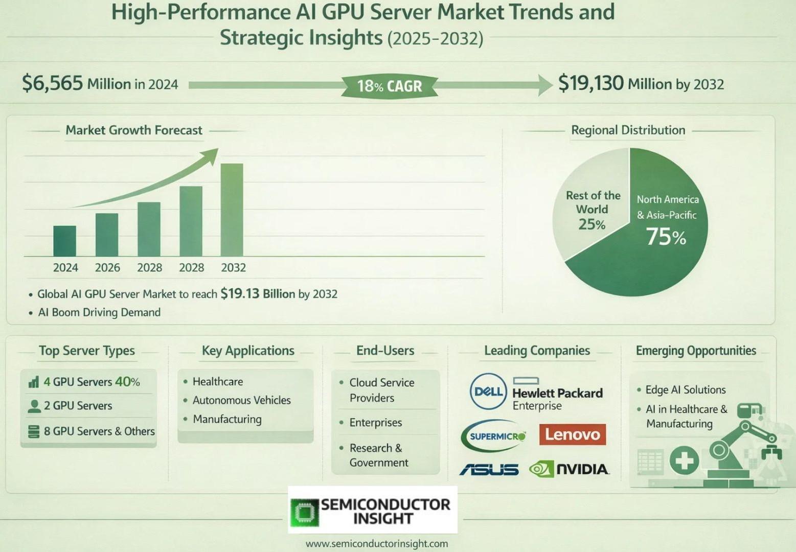 Global AI GPU Servers Market, valued at a robust US$ 6,565 million in 2024, is on a trajectory of remarkable expansion, projected to reach US$ 19,130 million by 2032. This growth, representing a compound annual growth rate (CAGR) of 18.0%, is detailed in a comprehensive new report published by Semiconductor Insight. The study highlights the indispensable role of these high-performance computing systems in accelerating artificial intelligence workloads across industries, from healthcare diagnostics to autonomous vehicle development.